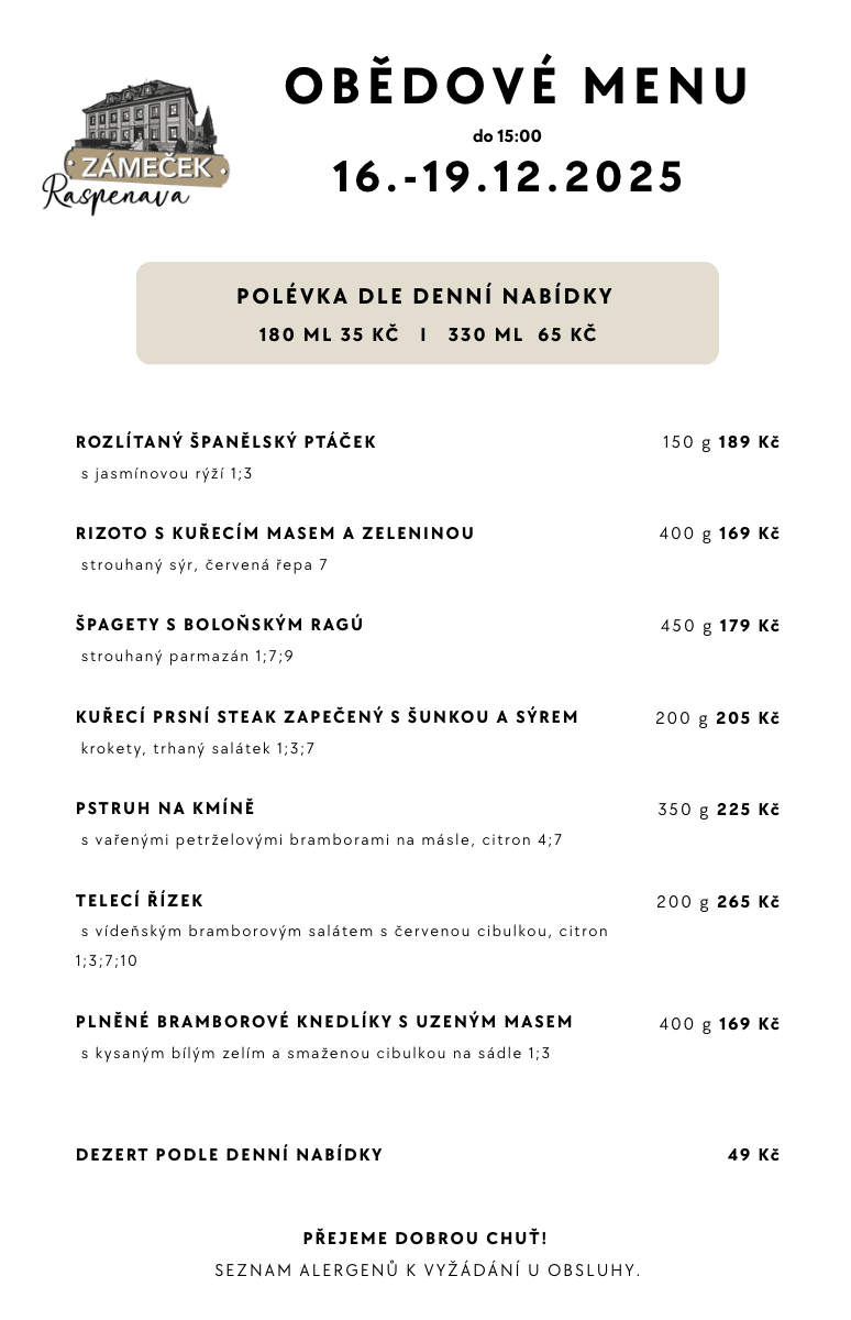 - Polopenzi je potřeba objednat předem.